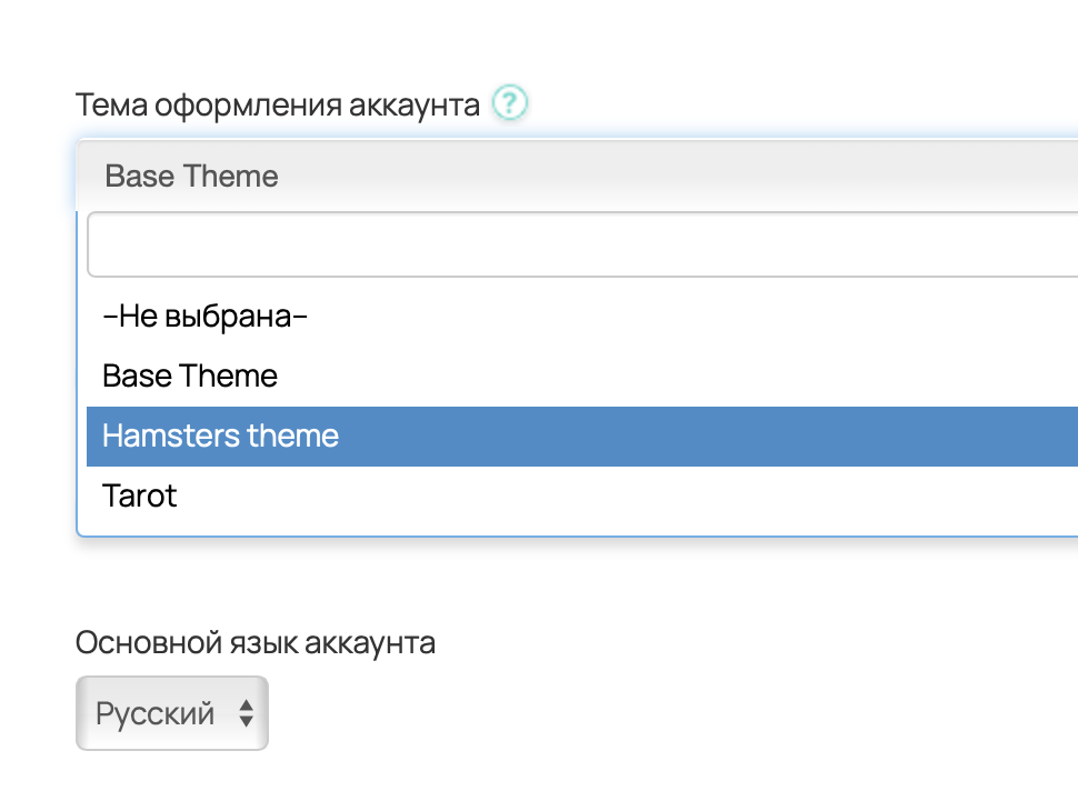 Теперь в настройках аккаунта школы измените тему на новую. Она будет «подтягивать» все стили из базового набора, плюс, ваши обновлённые стили.