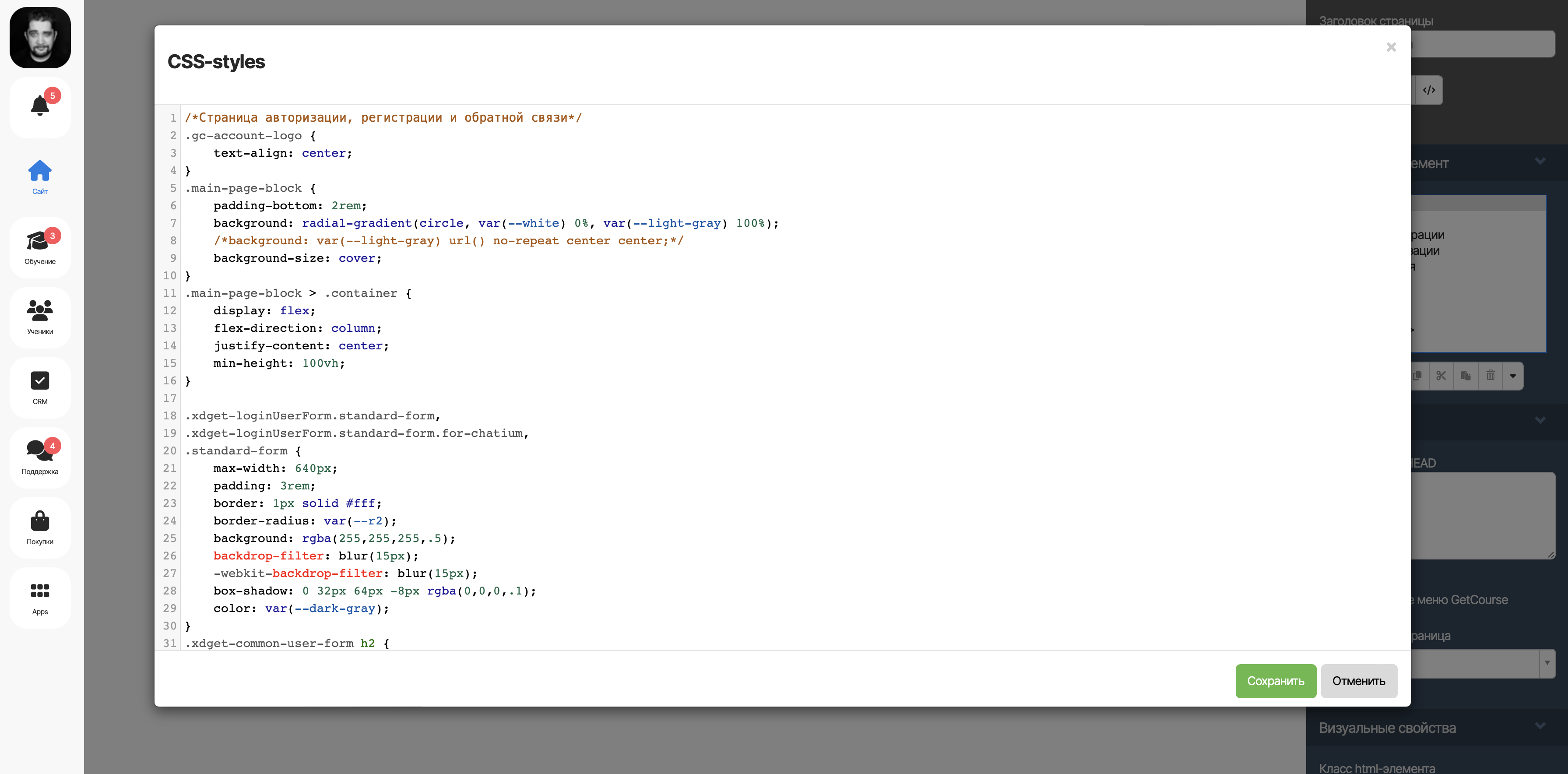 Нажмите кнопку «Сохранить» и закройте окно редактирования стилей страницы. После чего сохраните все изменения, нажатием на кнопку «Сохранить» в правой колонке редактора.
